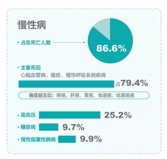 據(jù)統(tǒng)計(jì),中國每五個(gè)人中就有一人是慢性疾病患者,有50%的人不到60歲就已經(jīng)死亡!超過5.8億人具有一種或多種與慢性疾病相關(guān)的危險(xiǎn)因素;慢性疾病導(dǎo)致死亡占我國總死亡率的86.6%,占我國總疾病負(fù)擔(dān)近70%。