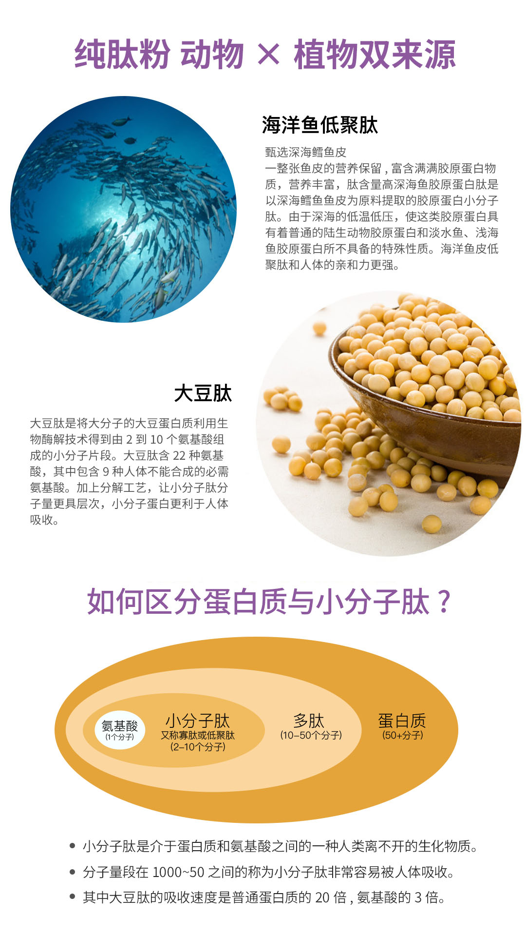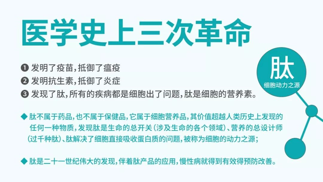 肽不是藥,更不是針對某種疾病配置的藥品,它是國家權(quán)威機(jī)構(gòu)認(rèn)可的特殊膳食營養(yǎng)。補(bǔ)肽通過全面均衡的補(bǔ)充營養(yǎng),從而優(yōu)化人體自身的代謝系統(tǒng)、免疫系統(tǒng)、抗氧化防御系統(tǒng),以及修復(fù)系統(tǒng)等,幫助身體機(jī)能調(diào)節(jié)到最佳狀態(tài)。在環(huán)境逐漸惡化、年齡增長的同時(shí),合理補(bǔ)充肽營養(yǎng)將達(dá)到美容,延緩衰老,延長壽命的作用。