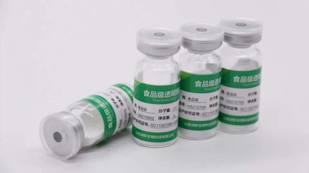 在食品添加劑中添加透明質(zhì)酸鈉作為營養(yǎng)基用,而口服含透明質(zhì)酸鈉的食品則是為了起到補(bǔ)充機(jī)體水分、改善骨骼關(guān)節(jié)功能、保護(hù)胃黏膜等眾多功效。在食品級別應(yīng)用中其對透明質(zhì)酸鈉中純度的要求,相較于醫(yī)藥級別沒有那么高,但對微生物的要求會高一些。因?yàn)槿梭w消化道極端的PH和其他益生菌的存在,使得其對蛋白等物質(zhì)不需要做嚴(yán)格的要求也可以充分發(fā)揮其功能,所以對于食品級來說其相對低純度的透明質(zhì)酸鈉就能滿足大部分廠家的需求。