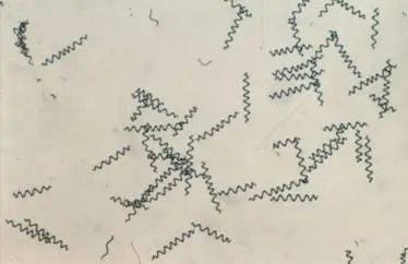 圖 1-2 :在光鏡下放大 400 倍 ( 油鏡 ) ,可清晰看到多個單細胞串聯(lián)成螺旋樣絲狀的整體,細胞膜間隔分明,胞漿中無完整的細胞核,有多個色素囊聚集成群,類似胞核,故與真核細胞有別,稱為原核細胞。