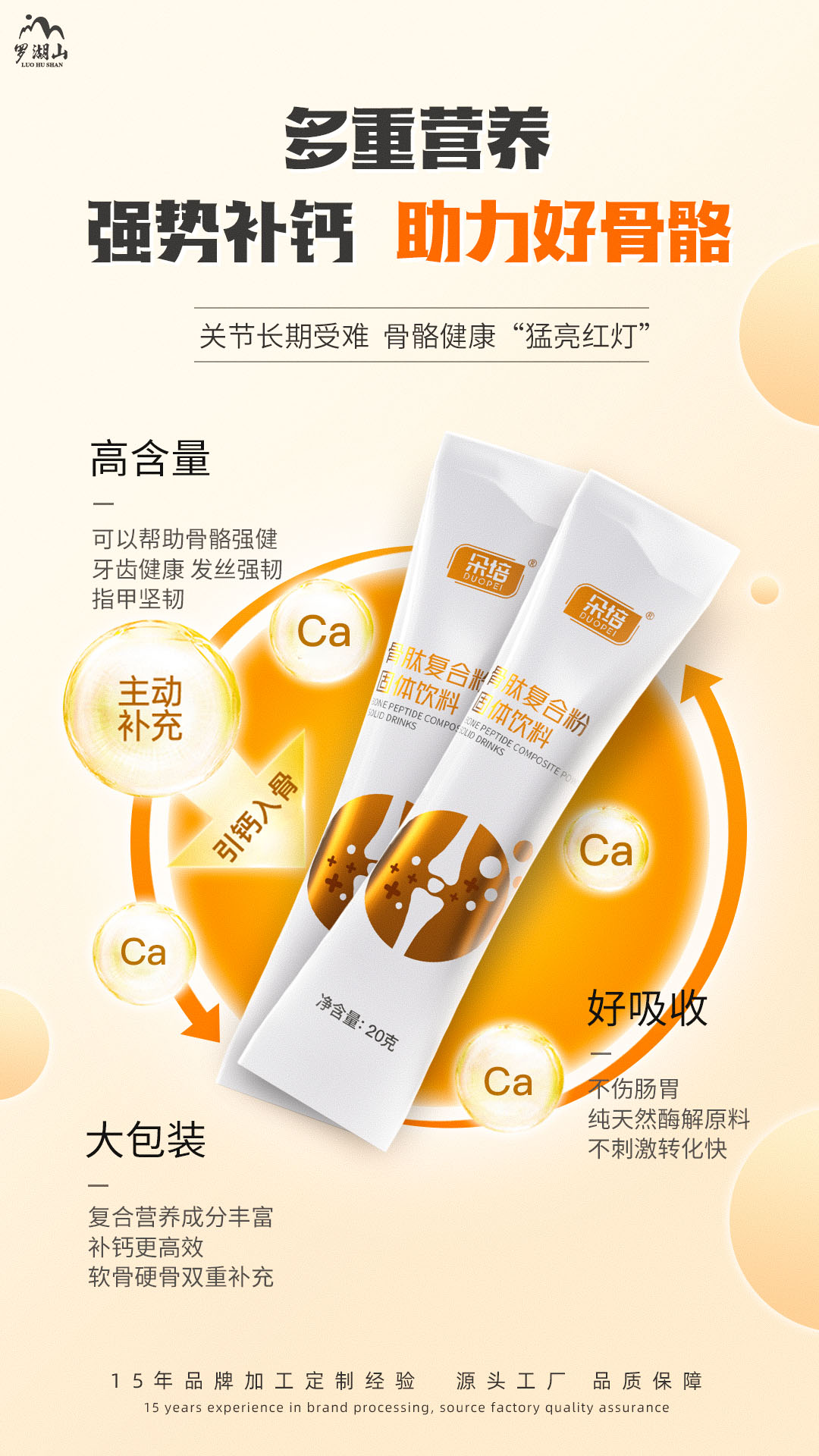 廣州羅湖山生物醫(yī)藥科技有限公司特推出骨肽復(fù)合粉,引鈣入骨,多重營養(yǎng),助力好骨骼