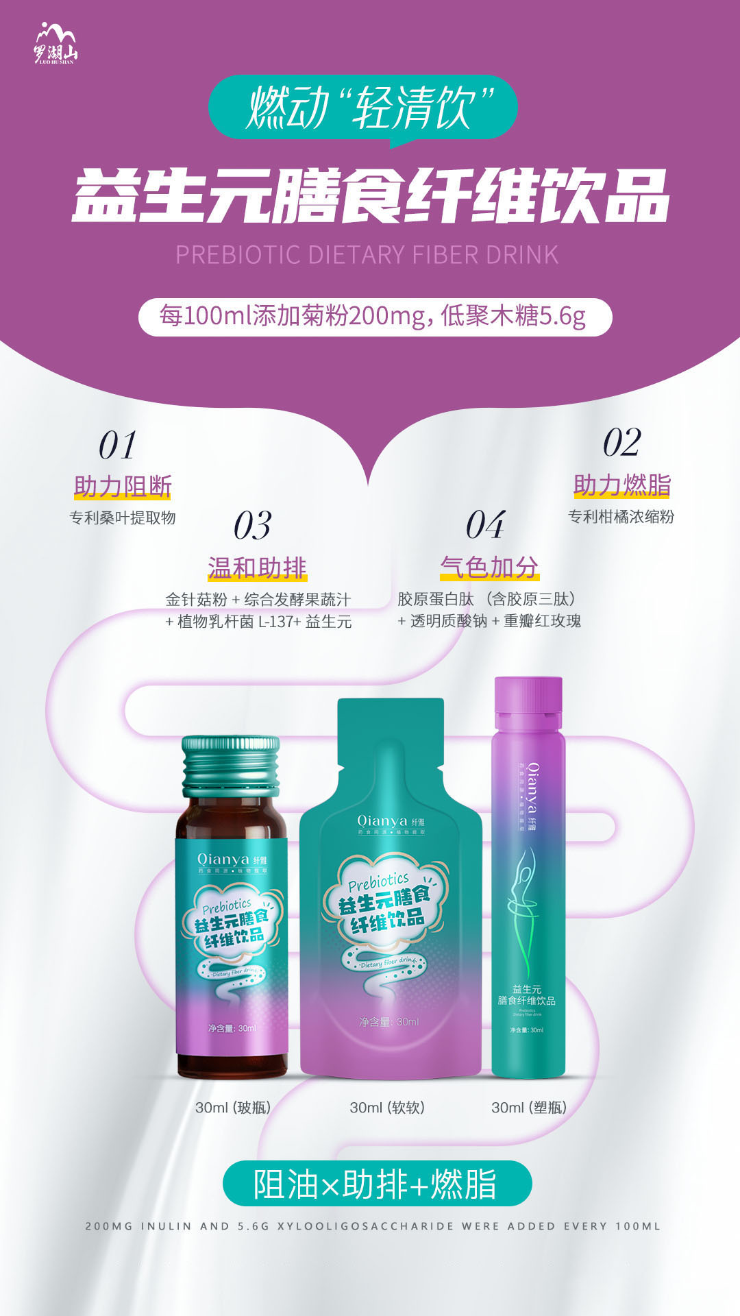廣州羅湖山生物醫(yī)藥科技有限公司特推出雙益膳食纖維飲品,創(chuàng)新配方益生菌+益生元+膳食纖維,長期飲食油膩,需要雙益膳食纖維飲品做您的嗨吃伴侶,0糖瓶裝方便攜帶,隨時打開想喝就喝